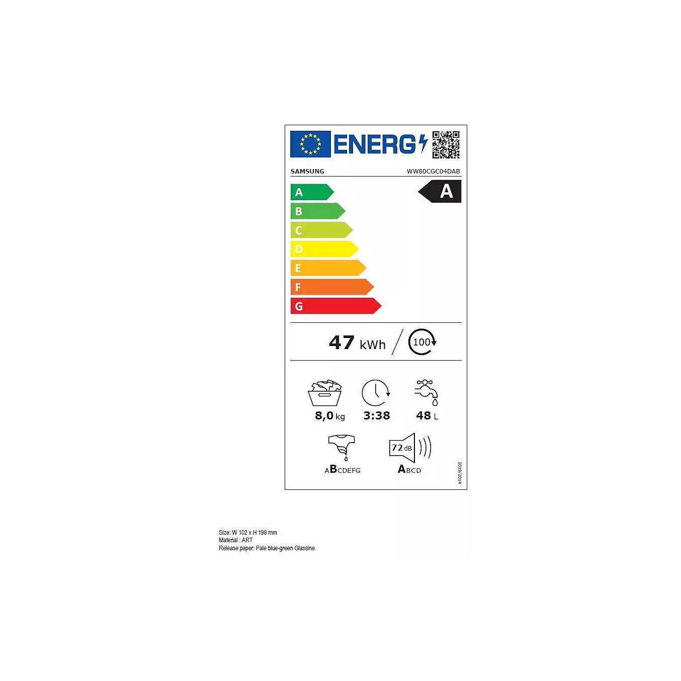 Le lave-linge hublot Samsung WW80CGC04DAB Bespoke AI est conçu pour l’entretien du linge dans un usage domestique courant. Il dispose d’une capacité de lavage de 8 kg et d’une vitesse d’essorage maximale de 1 400 tours par minute, adaptées aux besoins d’un foyer de taille moyenne.