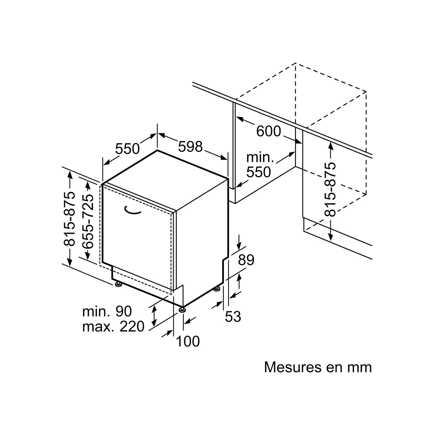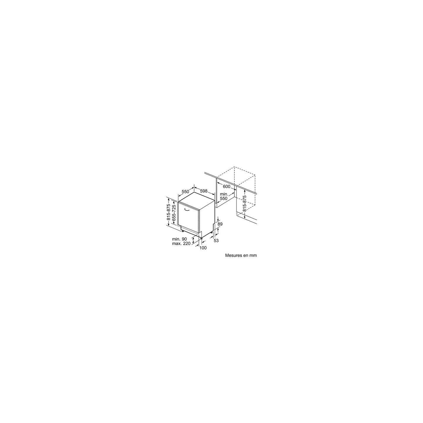 - Type de produit : lave-vaisselle tout encastrable