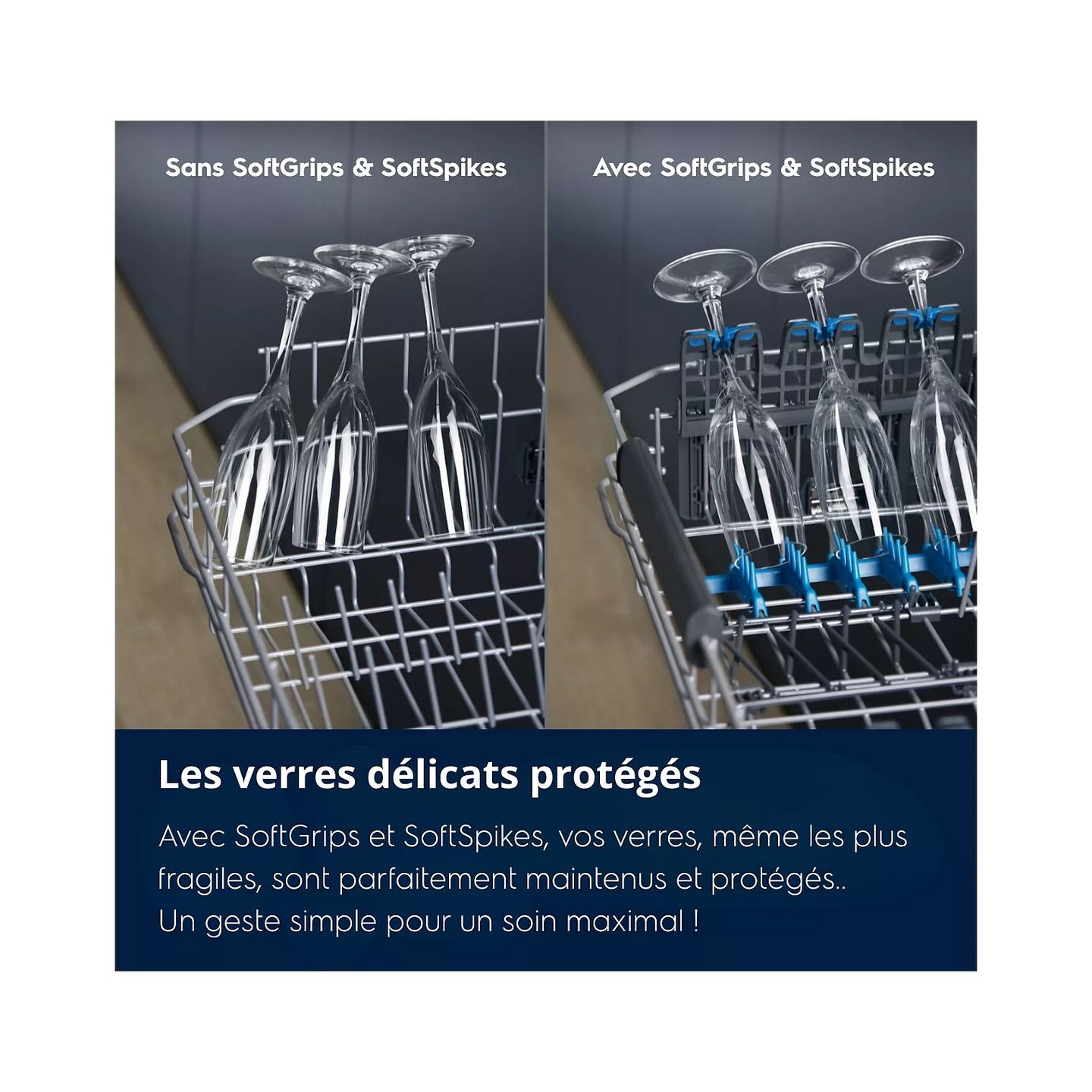 Il propose plusieurs programmes de lavage, dont des cycles automatiques qui ajustent le fonctionnement selon la durée sélectionnée. L’ouverture automatique de la porte en fin de cycle favorise le séchage à l’air libre. L’aménagement intérieur comprend un tiroir à couverts et des supports dédiés aux verres fragiles.
