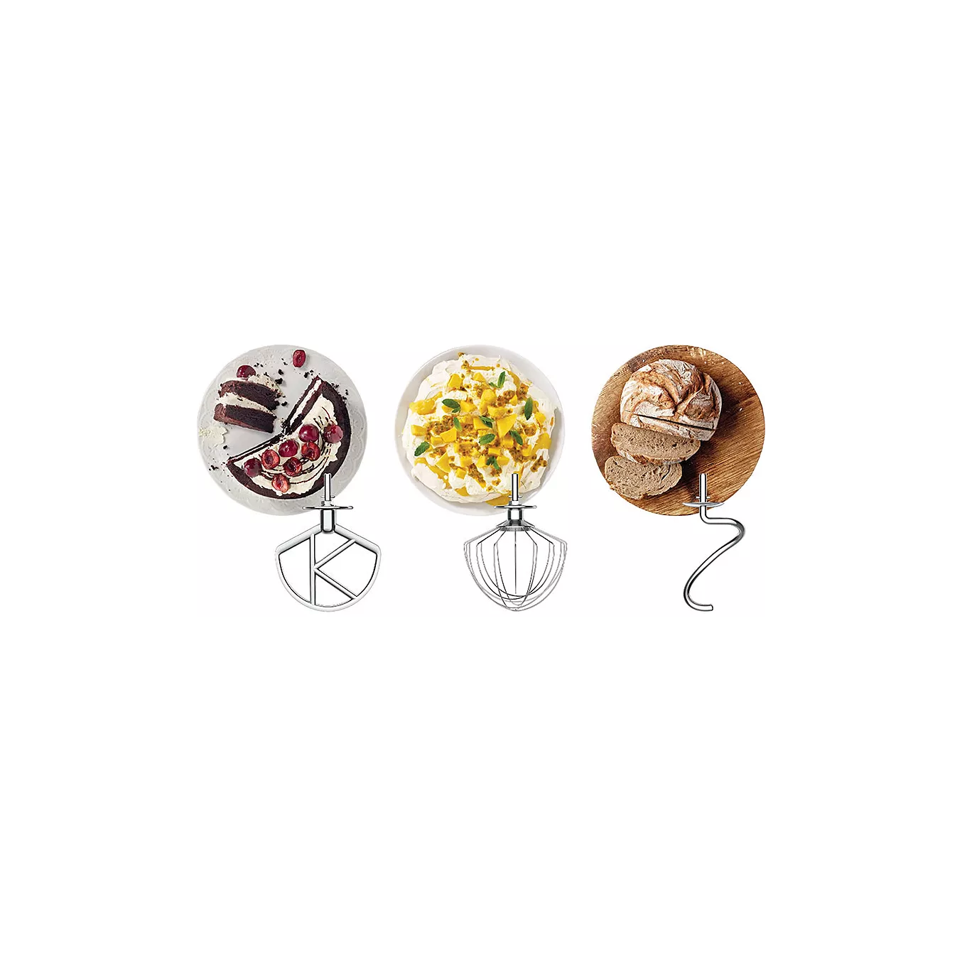 Le robot est fourni avec plusieurs accessoires conçus pour accompagner différentes étapes de préparation, ainsi qu’un couvercle anti-projections pour un usage plus pratique.