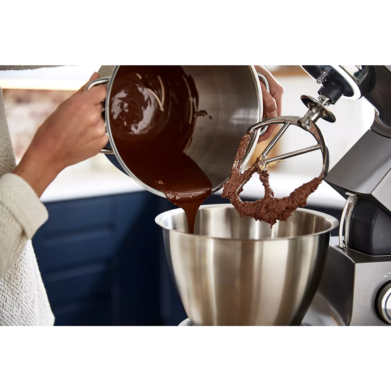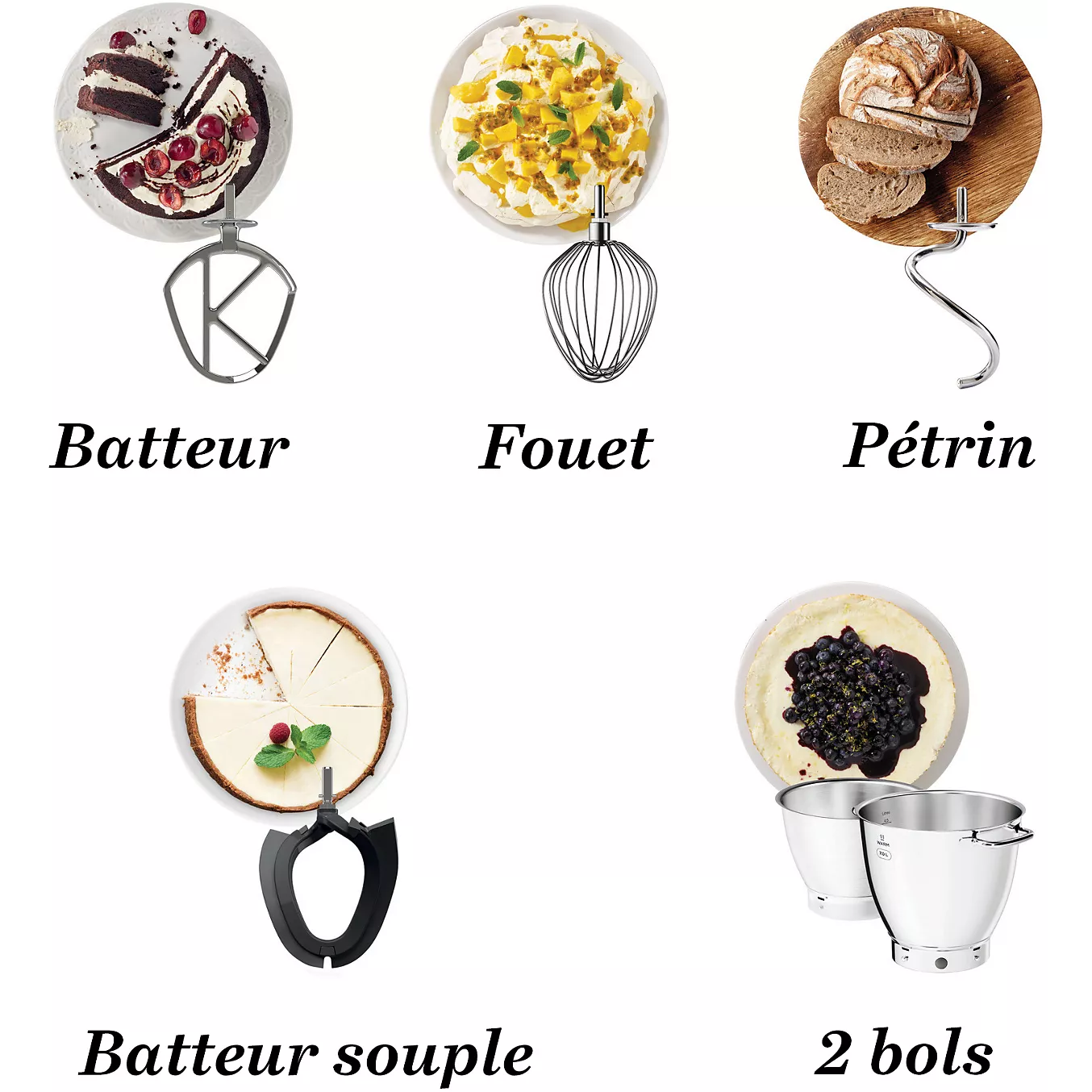 Il dispose de deux bols en acier inoxydable, dont un bol principal de 7 litres, permettant d’alterner les préparations. Son moteur de 1400 watts, associé à une transmission par courroie, assure un fonctionnement régulier et maîtrisé. Le mouvement planétaire permet une répartition homogène des ingrédients dans le bol.